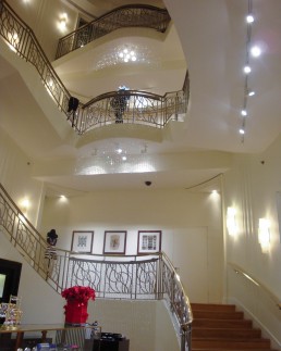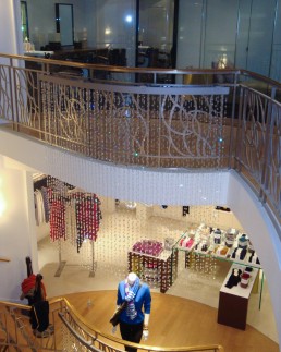 As part of a storefront display, Henri Bendel looked to Orion to design, engineer and install this crystal strand system that takes the shape of the famed Brooklyn Bridge. Orion designers came up with the concept of a forced perspective of the bridge, to give it a  more realistic look and feel.  The strands were installed in one of their New York City retail locations.